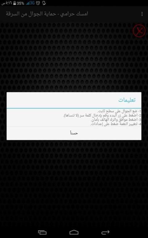 3- لا يمكن الخروج من التطبيق اثناء عمل التنبيه مما يصعب على السارق ايقاف التطبيق ويساعدك في اكتشاف السرقة.