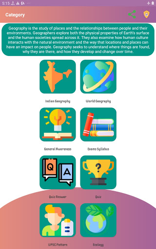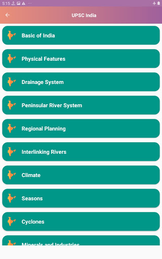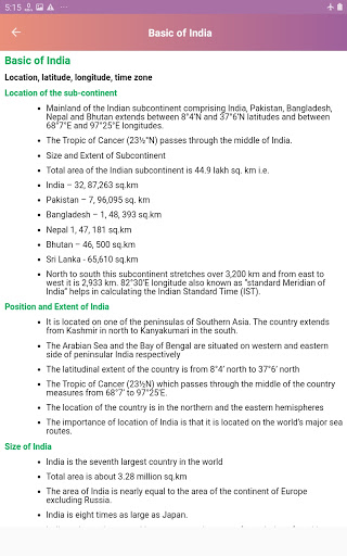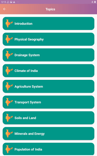 Indian Geography is a simple app that contains general knowledge of Indian Geography. This app gives you basic knowledge of Geographical part of India. This app contains selective and important topics. This app helps you in competitive exams. It contains quiz game that helps you to check your knowledge.