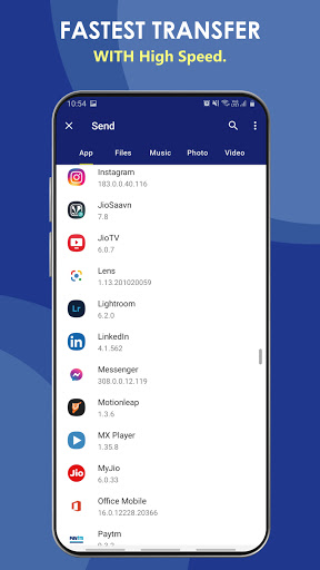The transfer speed this app offers depends on the sender and receiver device. For the best speed, use Wifi Direct or Wifi Tethering (and uncheck Wifi in the app's connectivity mode setting)
