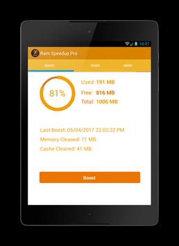 Ram speedup pro It will help you boost your device to an optimum level and clean up the dirt on your RAM. It is an ultimate RAM Speed Clean and Booster that will boost your RAM to a whole new level and keep your device lag free in day to day activities. it helps to accelerate and clean up your phone with a single click to reach optimum performance.