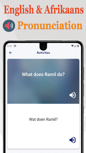 * Learn Afrikaans from English very quickly and fluently with the help of this amazing app. Accomplish your goal of speaking Afrikaans. This is a simple app for everyone who wishes to learn Afrikaans very fast and in an easy way. If you start using this app you will be able to communicate in Afrikaans effectively.