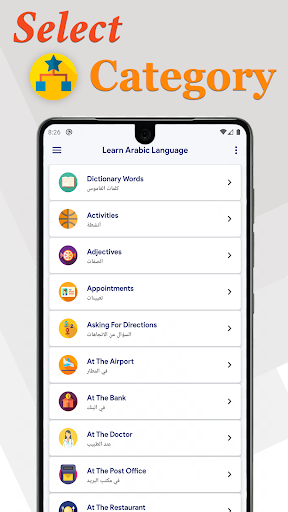 There are many categories in which you can find phrases such as if you want to Know that where is the doctor sitting today than you will find a category (At the Doctor) and in this category, you will find phrases about the doctor. You can easily learn Arabic if you give 15 Minute a day to this application.