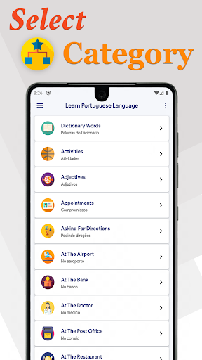 There are many categories in which you can find phrases such as if you want to Know that where is the doctor sitting today than you will find a category (At the Doctor) and in this category, you will find phrases about the doctor. You can easily learn Portuguese if you give 15 Minute a day to this application.