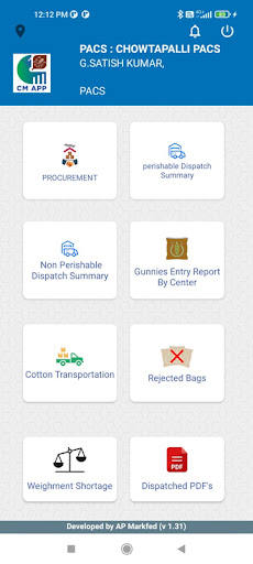 CMAPP is a unified procurement platform developed by AP MARKFED for the comprehensive monitoring of agricultural crop prices across all locations in the state of Andhra Pradesh. The application is intended to be used by all State Departments and State level and National level Nodal agencies) such as Department of Agriculture Marketing, AP OILFED, APSCSCL & NAFED,FCI & CCI, engaged in the MSP procurement of various agricultural commodities.