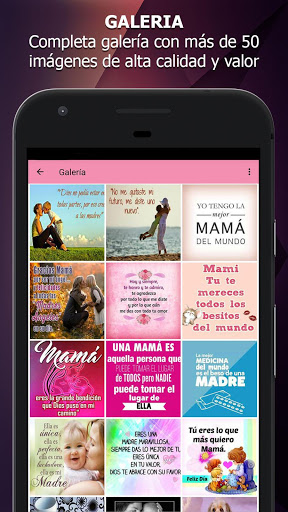Nuestra aplicación, te ofrece más de 60 imágenes, con las mejores frases bonitas para una madre, las cuales serán perfectas para demostrarles cuanto le quieres, valores y amas. Disfruta la oportunidad que colocamos a la distancia de un clic, para que le retribuyas tanto amor, cariño, comprensión, respeto, apoyo y en especial esa mano amiga, que nunca te abandona y siempre te impulso a conquistar tus sueños y metas.