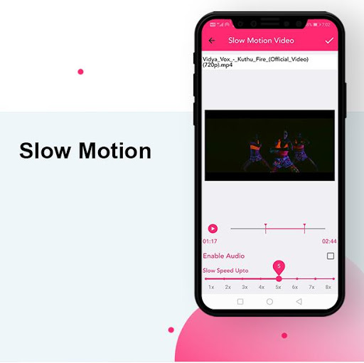 Create slow-motion video of a particular part of the video by using trim option or make the whole video slow. Choose any video and select speed like 1/2, 1/3, 1/4, up to 1/10.