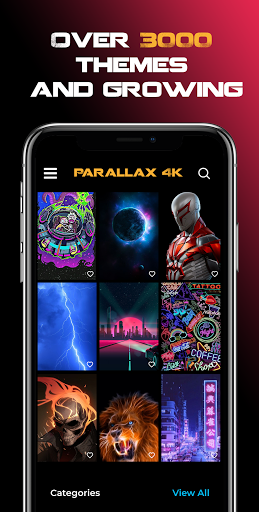 Parallax Wallpapers 4K give your home screen and lock screen a real 3D depth with gyroscope controlled parallax backgrounds.