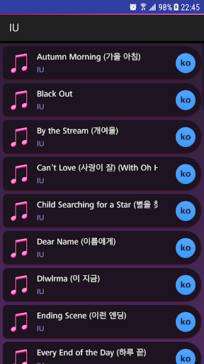 I'm a big fan of IU, so I looking forward in her other songs, this app is amazing, but hopefully for the next time plss add the other songs that IU's ft.