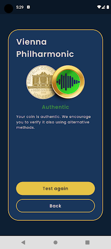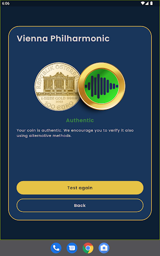 Coin Tester is an advanced application that allows users to verify the authenticity of one-ounce gold and silver coins. The application uses the method of acoustic resonance (known as the ping test) and artificial intelligence to determine whether the user is dealing with a genuine coin.