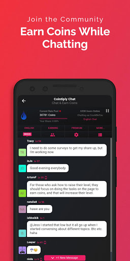 * Chat with other crypto currency enthusiasts and earn Coins.