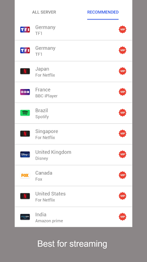 location (no need to close the existing connection first). The app can also select the best performing server for you automatically