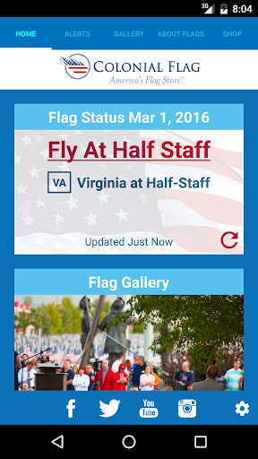 -- Notifications for half staff alerts and other flag holidays delivered to your mobile phone