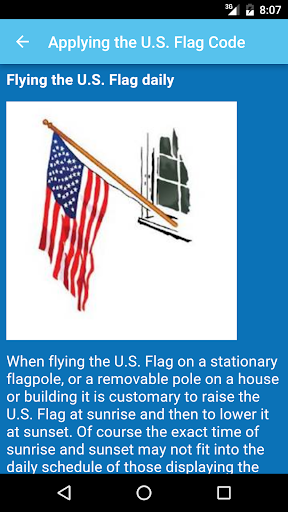 This mobile app provides details on proper flag etiquette and suggested dates to fly the flag. Status and instructions on flying the flag at half staff are also provided. Other useful resources will enhance your flag experience.