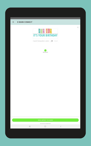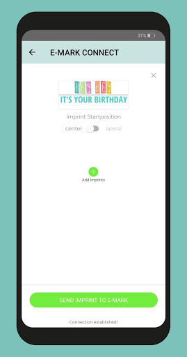 After your imprint design is finished, just send it to the e-mark via Wifi (no local WiFi needed; the WiFi is generated by the device itself) and print it with a simple sideways movement, either to the right or left. All generated imprints are stored in the app and can be sent to the e-mark in no time. Use the continual marking feature for repeating your imprint as long as you want.