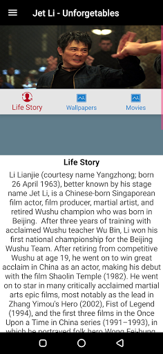 The whole life story and movies of the famous actor we know as Jet Li. Movies artist Jet Li' wallpapers and more in one app