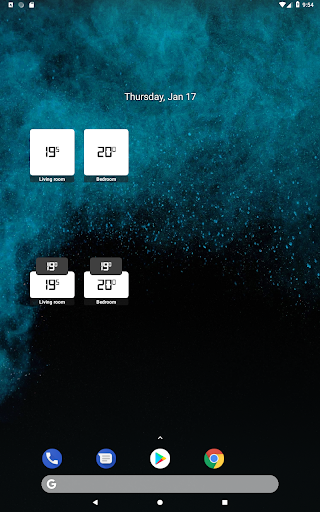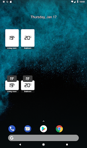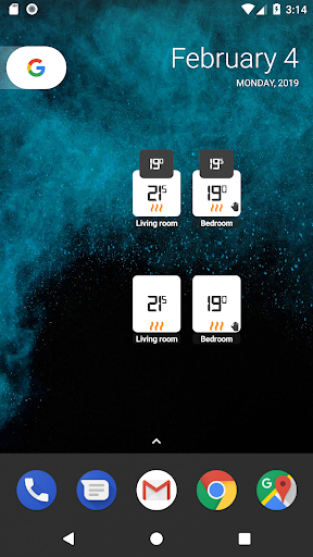 On widget is displayed information about required and actual temperature, manual setpoint flag, heating request or issue with connection to the unit.