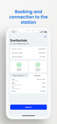 The following functions are also available: booking, filter of charging stations, display of charging parameters in real time.