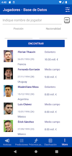 MX League -voorspellingen, prominente aspecten van het spel, database van spelers, live scores