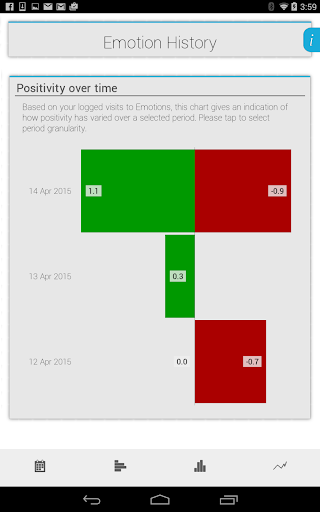 You can also track your own emotional ‘journey’ in charts and graphs, and take steps to improve your emotional state.