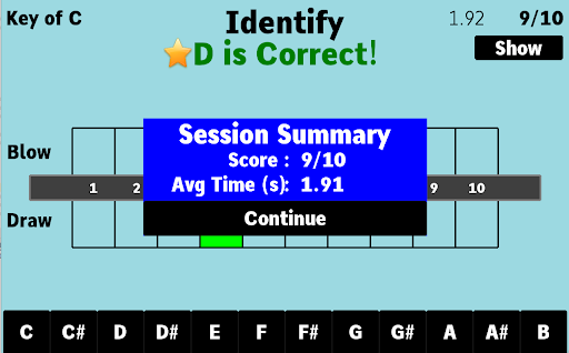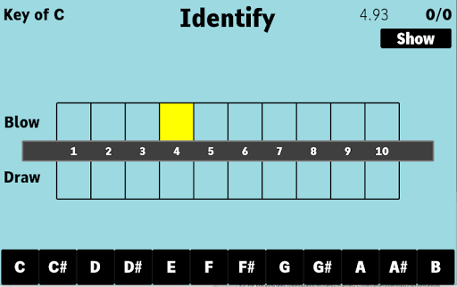 This app will test your ability to identify and locate the notes on the harmonica.