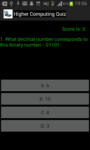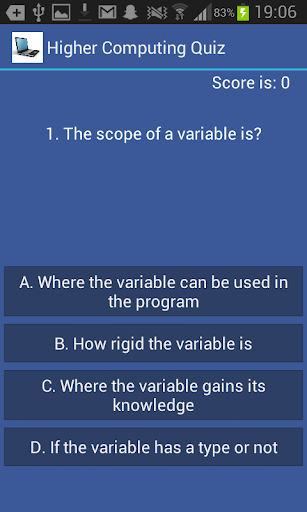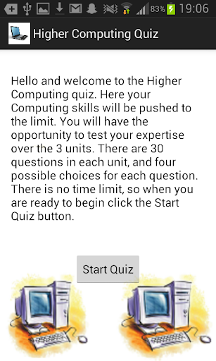 Fed up of having to read through hundreds of notes just to learn basic facts? Want all the knowledge in an easy to find place? Want studying to be thrilling? Then here's your answer - The Higher Computing Quiz. Designed to help students studying for their Higher and Intermediate 2 Computing exams, this quiz is packed full of knowledge, in an easy-to-understand format. Covering all three 3 units of the course, with a fabulous 30 questions per unit!! Studying will never have been so fast and easy. Some questions are easier than others (aimed at C level) and others are difficult (aimed at A and B level). The quiz comes complete with the full set of answers to help you learn from your mistakes (if any!!). Enjoy it and have a blast!!