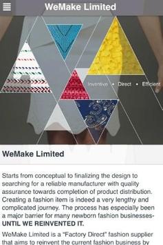 In this app you can find: About iMake, Our Strength, Factory Alliances, Fashion Collections, Woven For Ladies, Sweater For Ladies, Woven For Mens, Sweater For Mens, 2016 MAGIC, Contact us