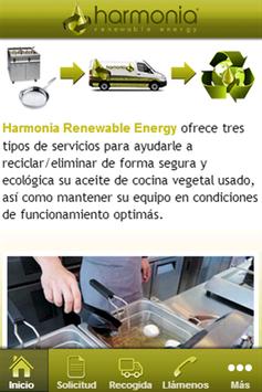 App oficial de Harmonia Renewable Energy, este app le permite solicitar nuestros servicios, y también solicitar una recogida de su aceite vegetal usado rellenando algunos campos y en un clic.