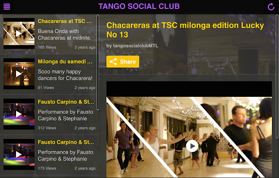Dance videos, candid photos from our events, essays from well known tango teachers, performers and musicians also can be accessed easily right from your smartphone or tablet.