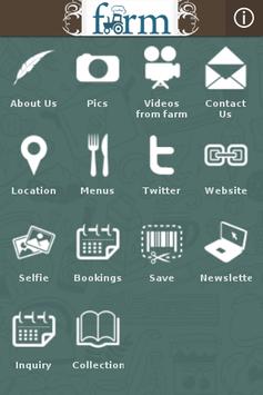 About Us, Pics, Videos from farm, Contact Us, Location, Menus, Twitter, Website, Selfie, Bookings, Save, Newsletter, Inquiry, Collections