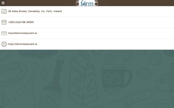 farm is a casual dining independent Restaurant in Clonakilty, West Cork. Food is cooked to order and employs many traditional cooking methods to include resting of meats so appreciate your understanding in this. Taking on a light-hearted approach to dining the aim is for a relaxed eating experience with touches of quirky food humor to include popcorn on arrival, laughs and merriment to get the taste buds being treated to the delights of West Corks finest. Paired with great wines from family run and small scale producers and Irish craft beers there is lots to try. Value for money is key and hope all who pass through the doors do so on many occasions enjoying their experiences every time. Looking forward to welcoming all from the tiniest of tots to the greyest of badgers. We'll compare stripes!!!