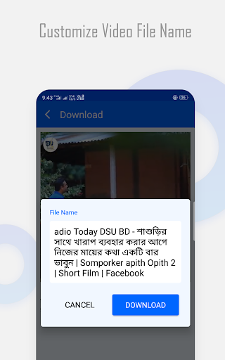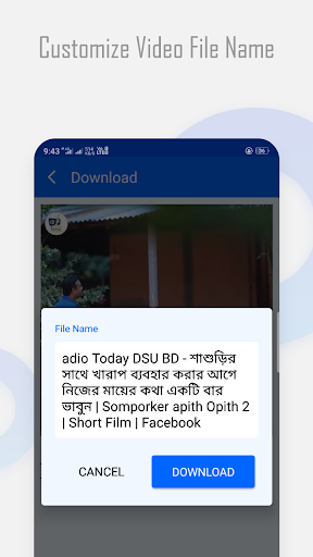 the powerful download manager allows you to cancel, pause and resume download. You can change the name of the video file before downloading