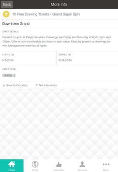 Get notified of your exclusive offers and rewards with the official Downtown Grand mobile app. Just log in with your MY POINTS number and zip code on file to view all of your valid offers. No more waiting for your coupons in the mail!