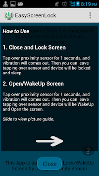 This App is automatically Lock/WakeUp Screen by using Proximity Sensor. You can easily lock or open screen just touching sensor. No more hardware power button click. Enjoy the app. :)