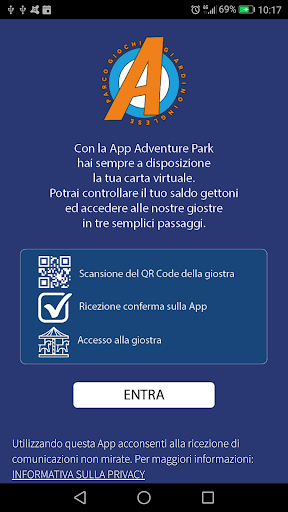 Con la App Adventure Park siamo ancora più vicini ai nostri clienti, infatti avvalendoci dell'innovazione tecnologica puntiamo a migliorare il nostro sistema di incentivazione con la Fidelity Card virtuale. I nostri clienti potranno installare la App sul proprio dispositivo mobile ed avere in questo modo tutte le informazioni sulla propria card e sui vantaggi guadagnati. Attraverso la App l'utente avrà la possibilità di accedere alle nostre giostre in modo semplice: basterà inquadrare il qr-code della giostra e confermare l'accesso. La App è inoltre uno strumento di comunicazione attraverso il quale i nostri clienti saranno sempre informati sulle nostre promozioni e iniziative.