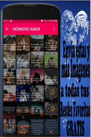 In Beautiful Phrases of Love with Romantic Images you will find categories like “Loving You,” “Love Forever” and “Next to You” so you can say with them “I Love You My Life”, “I Love Being by Your Side”, “Our Love It's forever ”,“ I miss you ”and“ I want to see you ”. Also, you can get a smile from your partner with funny photos that describe their relationship.