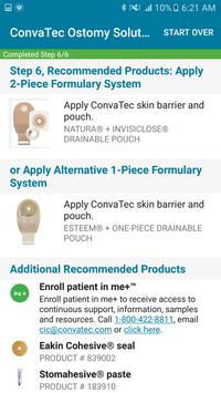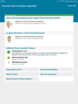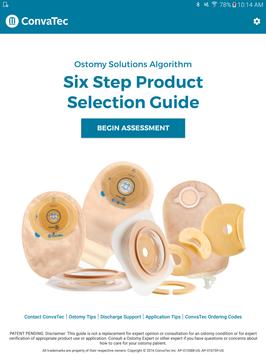 ConvaTec’s Ostomy Solutions™ Algorithm is an evidence based, 6-step algorithm tool that assists clinicians with safe product choice for various stoma and peri-stoma conditions. Upon completion of six simple steps, an individual specific treatment plan will be presented, as well as recommendations, tips and discharge support.