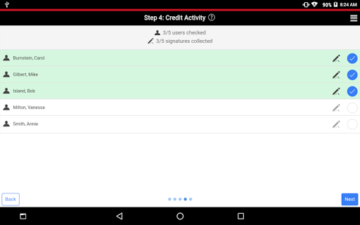 Take class attendance, checkoff tasklists, and grant credit for other activity types right from your Android device.