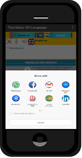You can share translated texts with your friends on your social networks.