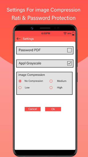Images to PDF Master, Image Quality setting including no compression, low, medium and high.