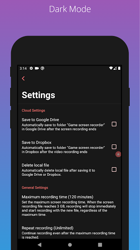 Cloud support (Recorded videos are automatically uploaded in Google Drive, Dropbox)