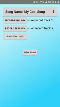 The song includes many help files that describe in detail how to use this app. Briefly, you first give the song a name. Then, you record a first track, repeatedly, until you are happy with it. Then, with headphones plugged in, you record a second track repeatedly, while listening to the first track, until you are happy with the mix. You then press the "bounce" button to save this mixture of two tracks. Now, you record a third track while listening to the first two tracks...you should have the idea by now. Record as many layers, or "tracks," as you like.