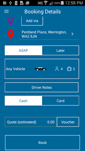 This App allows you to easily book a vehicle with ABBA CARS within the Warrington postcode area, Without the need to speak to a operator.