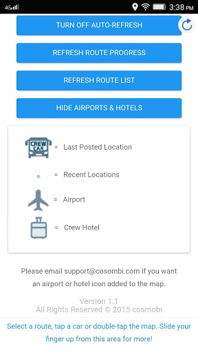 Crew Car is a free app for airline crew members. See where the crew transportation currently is, when the last airport pickup occurred and send the driver a new pickup request! Drivers must use the free Crew Car Driver app, which uploads location data every minute to keep you updated on their status and also notifies them of your pickup requests. No more calls to the hotel asking when transportation will arrive or to request a pickup! If your driver is not on the system yet, please let him or her know about the free Crew Car Driver app!