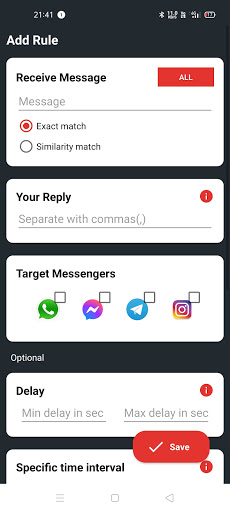 Automatically respond to custom received messages with this bot. You have a lot of settings to customize each auto reply for your needs. Download now for free!