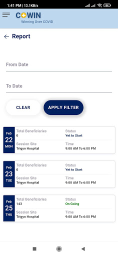 This Mobile Application is currently meant for CoWIN Facility level users to perform following tasks as Vaccinator , Supervisors and Surveyors.
