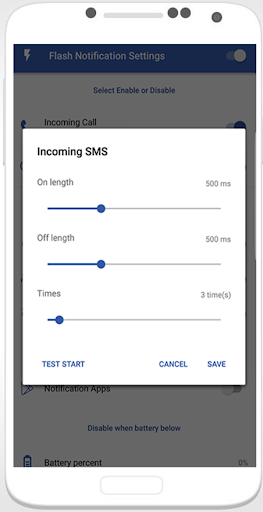 - Support front flash and back flash. It will blink front flash notification for all. You can choose front flash notification or back flash .