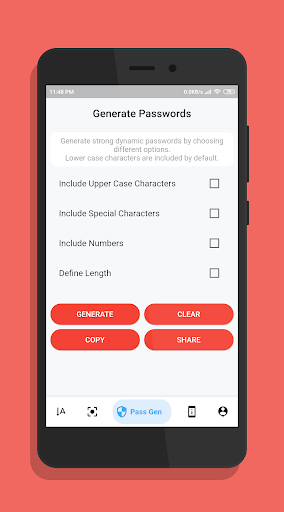 - Secure Password Generator: You can generate completely random passwords for high security, using multiple parameters available in the app.