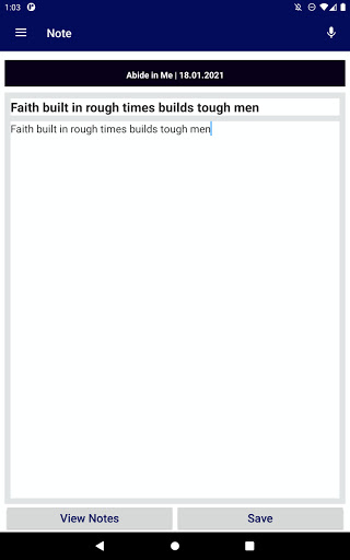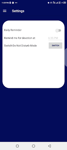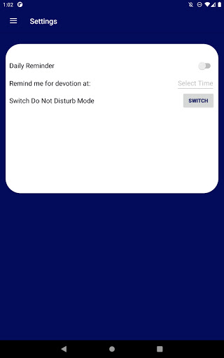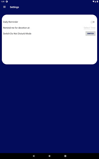 Incorporated speech-to-text capability for taking devotional notes. Do-not-disturb feature is introduced to prevent other notifications from popping up when app is on the foreground. The feature is activated only when app is on foreground if you have have allowed permission during installation or from settings page. Alarm and notification features included as well. Devotions can be bookmarked for future reference.