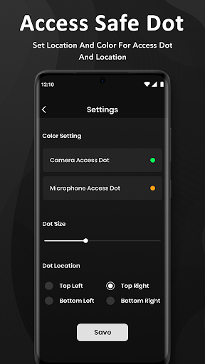 Presenting Access Safe Dots, adds the same iOS 14 style indicators (few pixels light up as a dot) to the top right (default) corner of your screen whenever any third-party app or service uses your phone's Camera or Microphone.