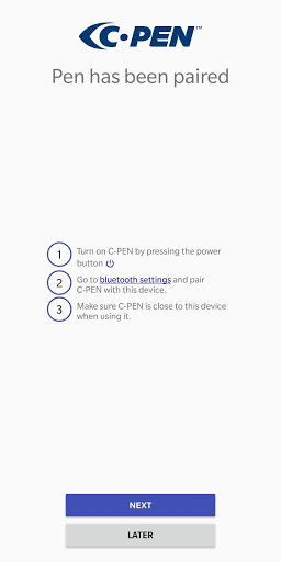 Companion app for C-PEN BT10 digital highlighter. For more details see https://cpen.com/bt10/. Scan text to your smartphone. Save locally or on cloud drive. Edit. Listen. Share. Send text to translation app for easy translation.